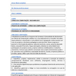 Projeto de Extensão Modelo Unopar Anhanguera Projeto de Extensão Modelo Unopar Anhanguera