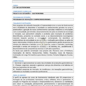 PROJETO DE EXTENSÃO I – GASTRONOMIA