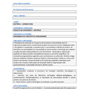 Plano de trabalho de estágio cursos de licenciatura – Estágio I ensino fundamental anos finais – História