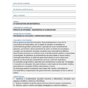 PROJETO DE EXTENSÃO – MATEMÁTICA 2ª LICENCIATURA