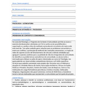 Projeto de Extensão II – Psicologia