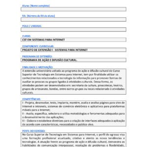 Projeto de Extensão Modelo Unopar Anhanguera Projeto de Extensão Modelo Unopar Anhanguera