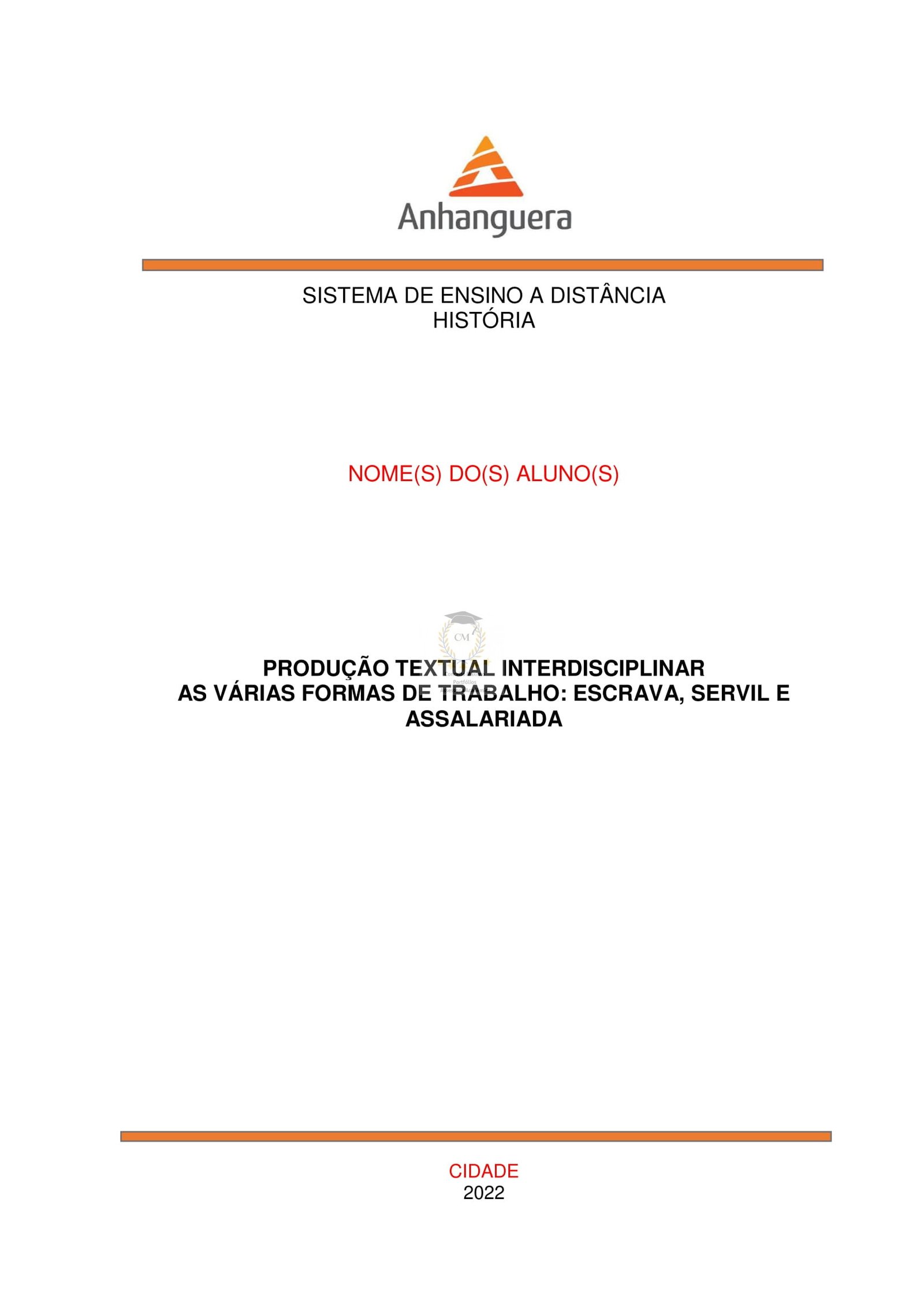 quatro laudas) sobre: “As várias formas de trabalho: escrava, servil e assalariada”. Aborde as