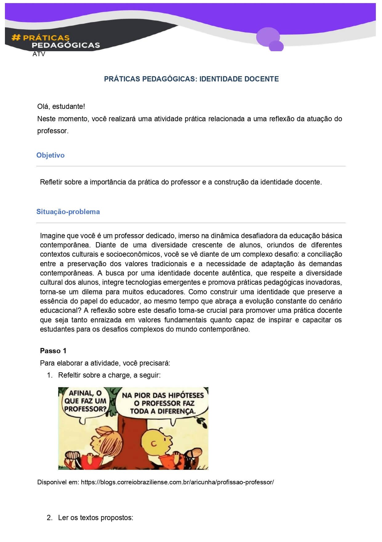 elencados no passo 1, que contemplam a construção da identidade docente na
