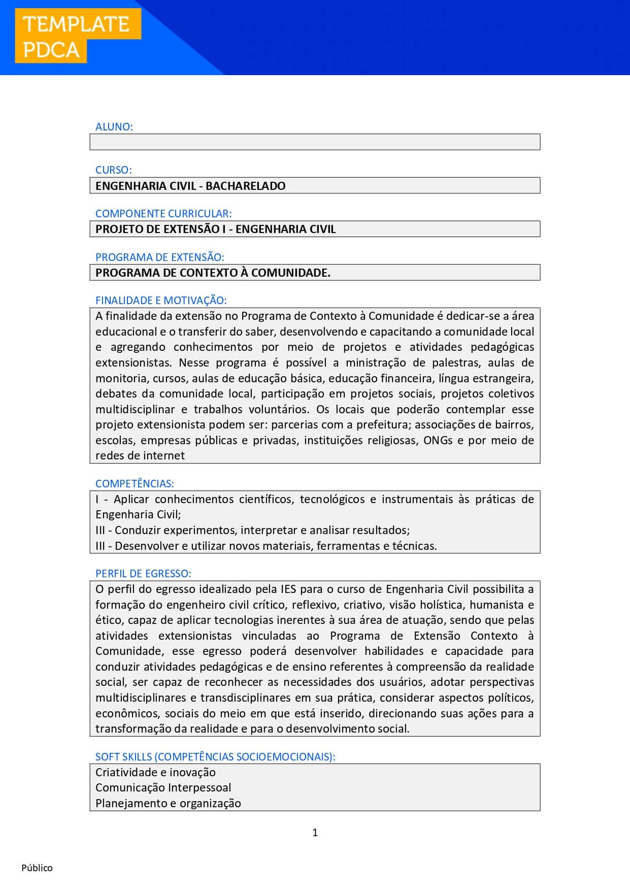| PROJETO DE EXTENSÃO I – ENGENHARIA CIVIL | ||||