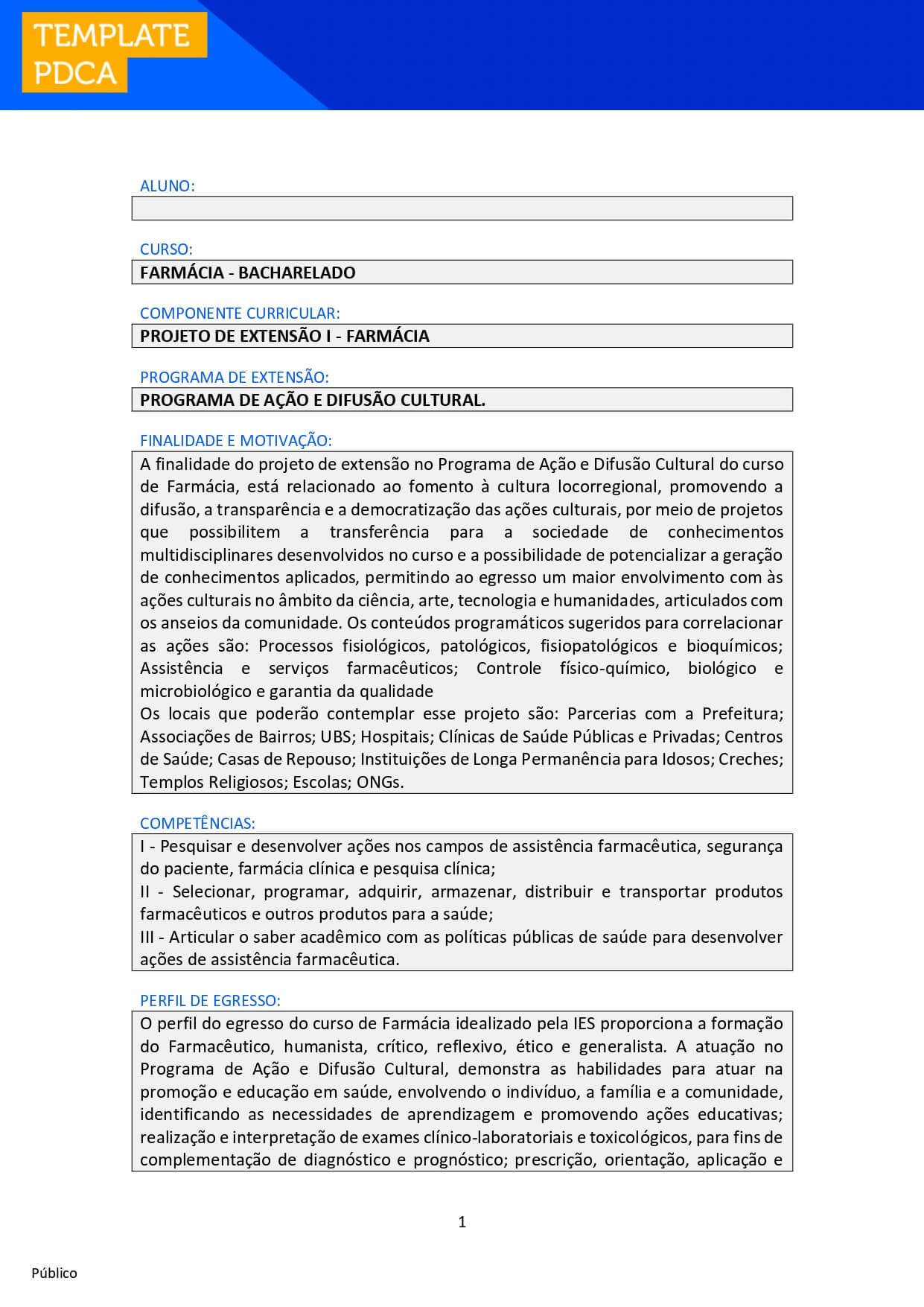 PROJETO DE EXTENSÃO I – FARMÁCIA