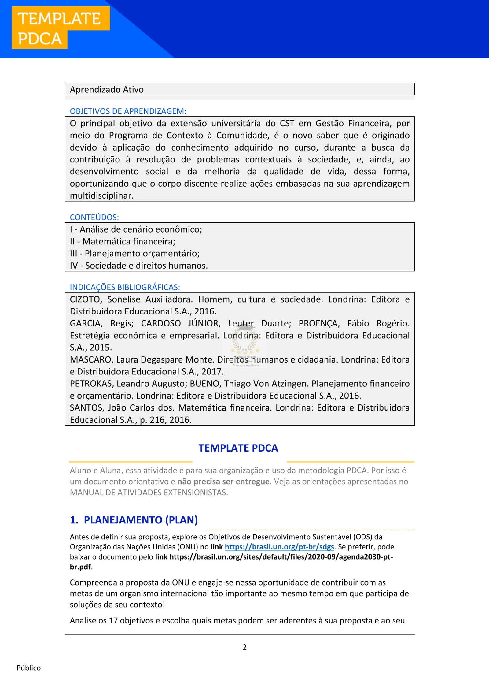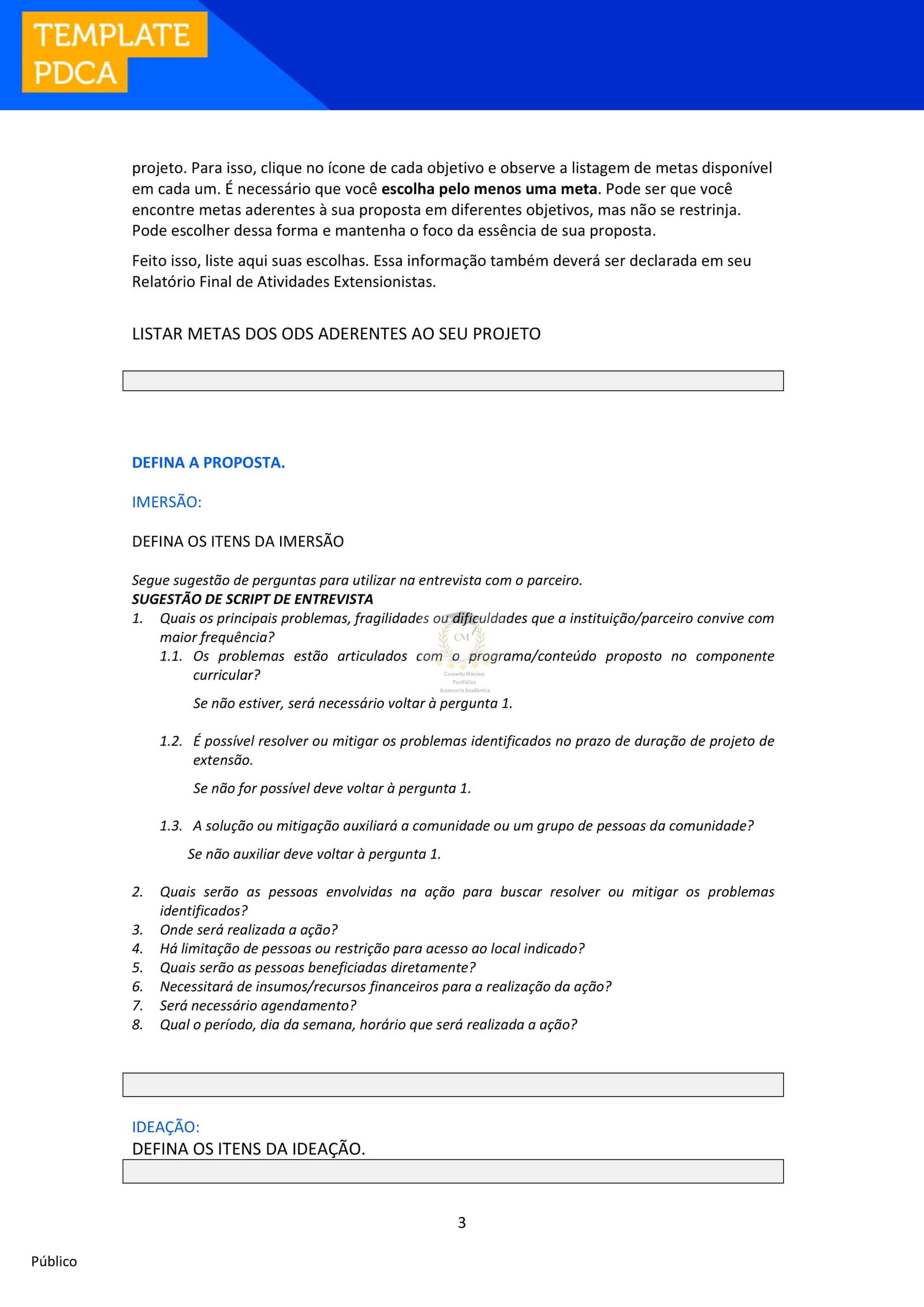 um documento orientativo e não precisa ser entregue. Veja as orientações apresentadas no