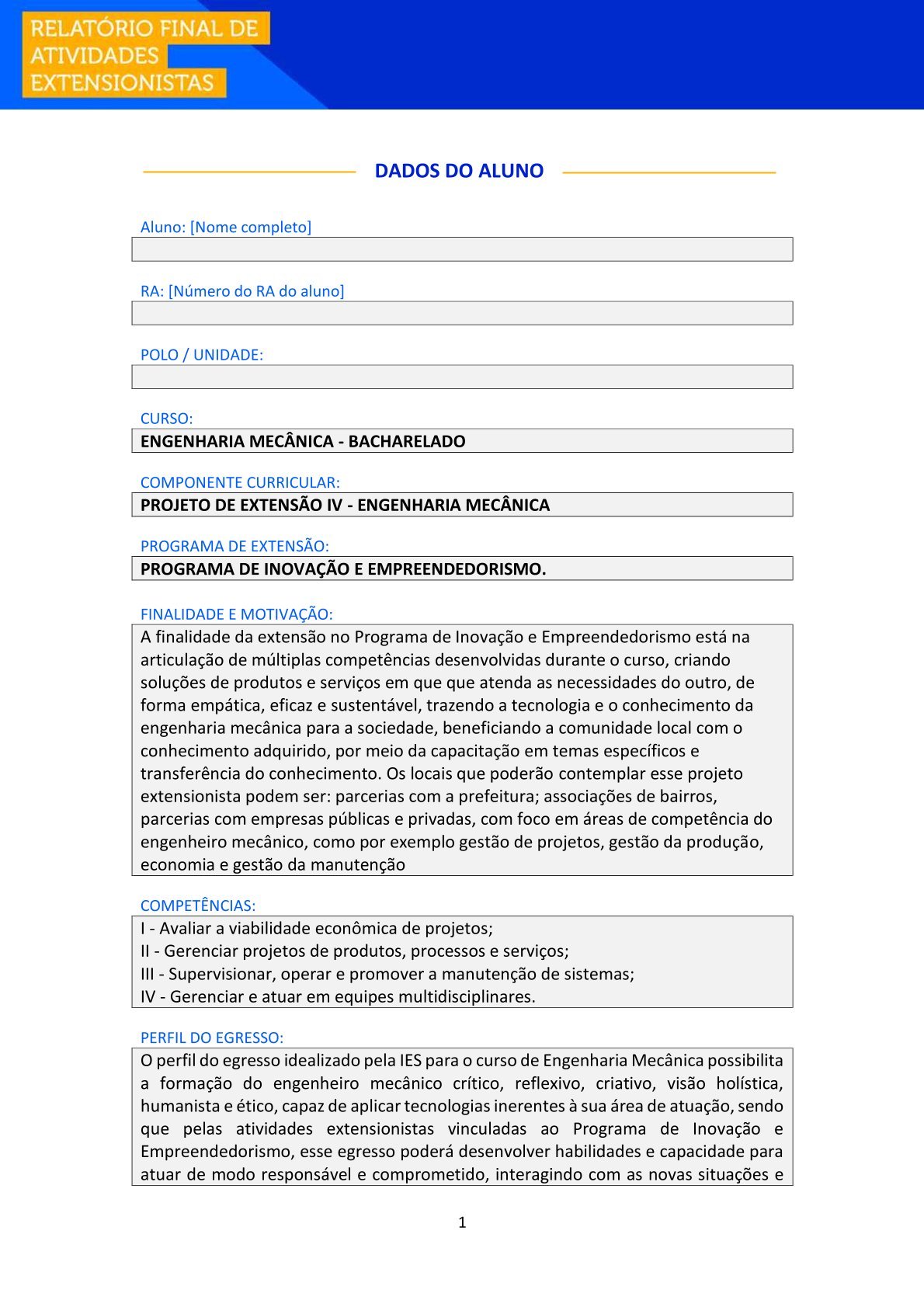 - COMPONENTE CURRICULAR: Projeto de Extensão IV – Engenharia Mecânica