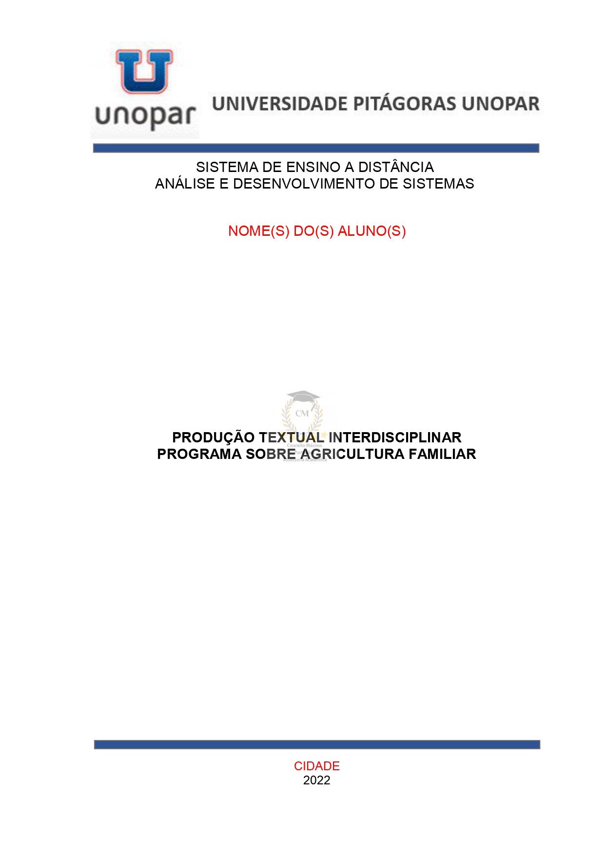 Projeto Integrado – Programa sobre Agricultura Familiar